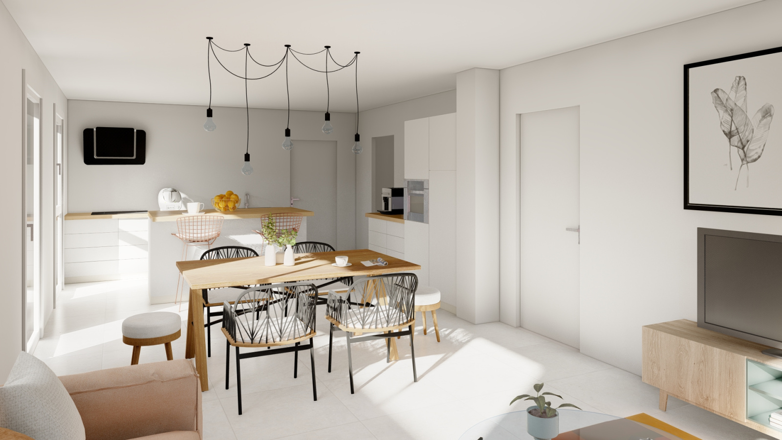 - Cuisine contemporaine entièrement équipée avec des appareils de qualité